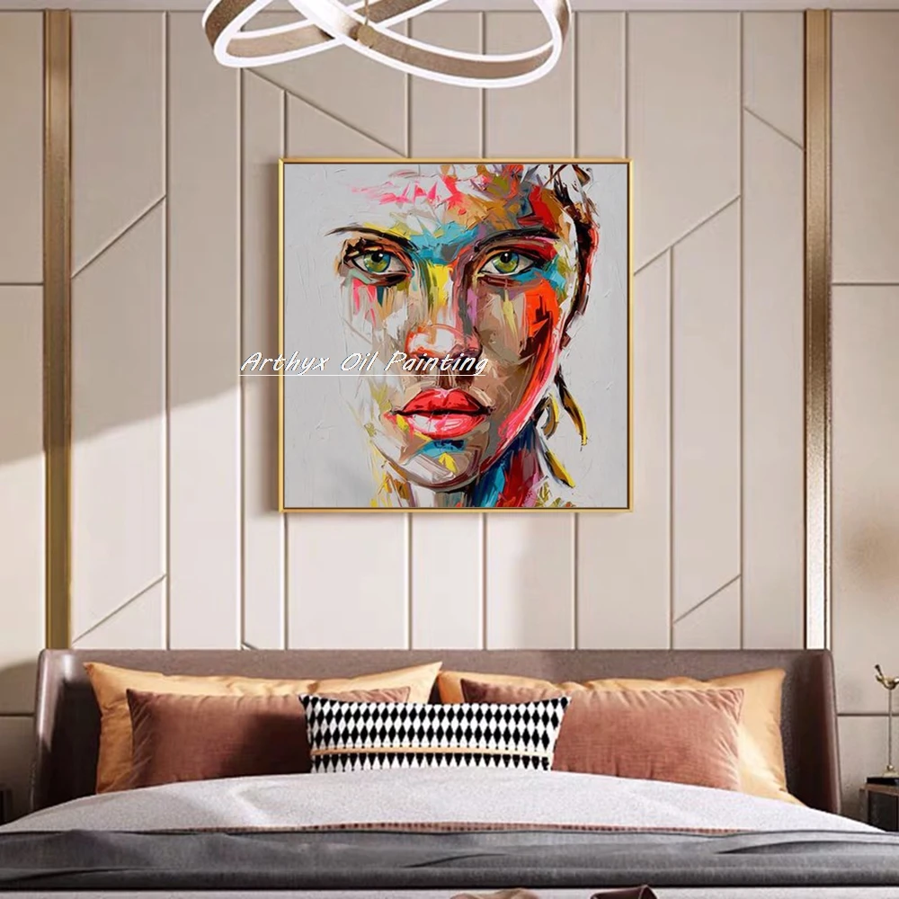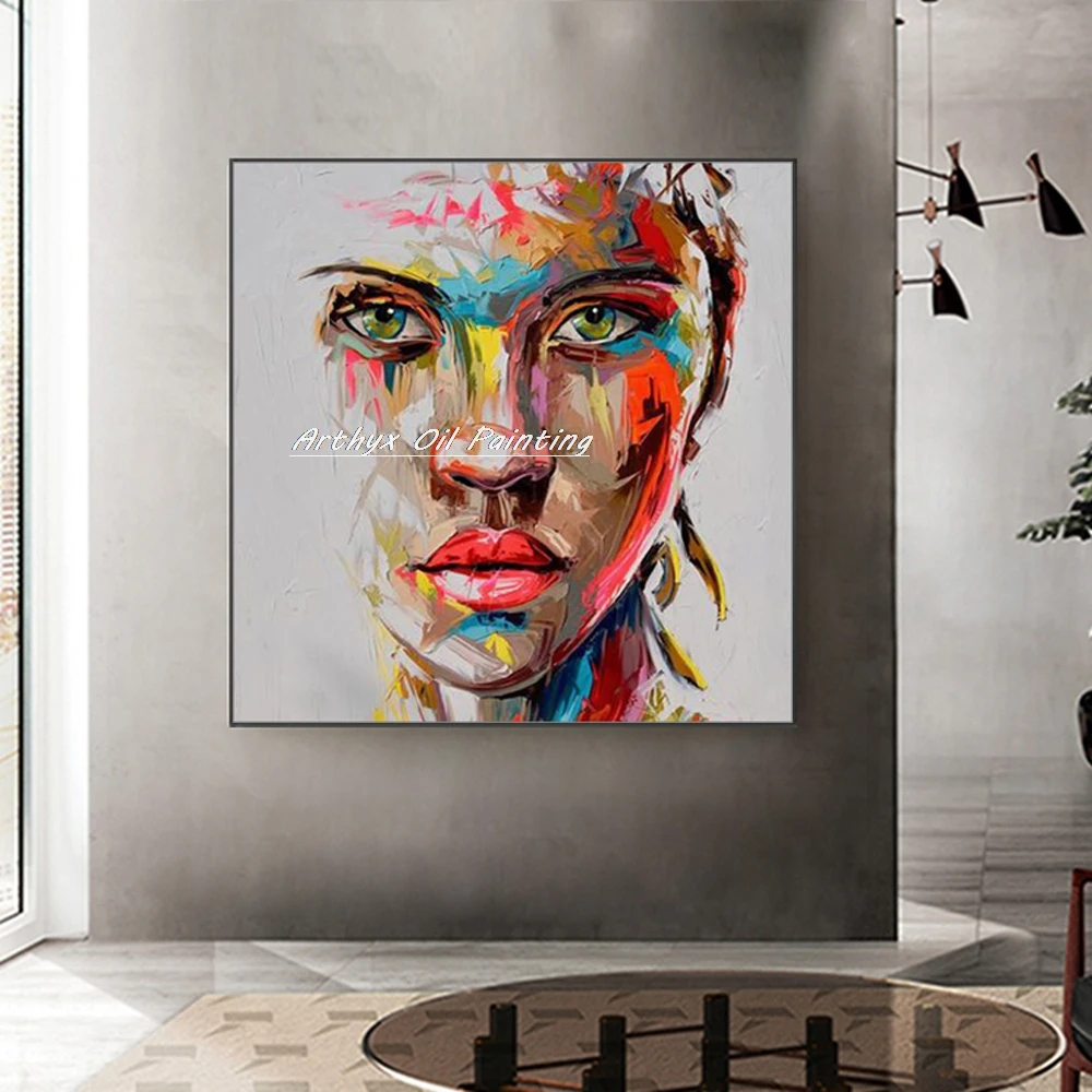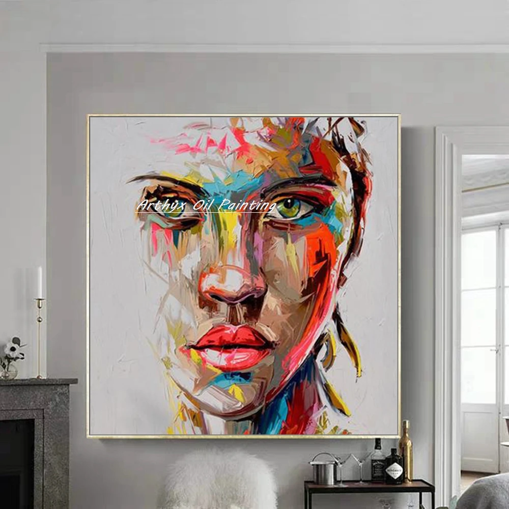 Arthyx Hand Painted Palette Knife Face Figure Oil Painting On Canvas Modern Abstract Wall Art Picture For Living Room Home Decor