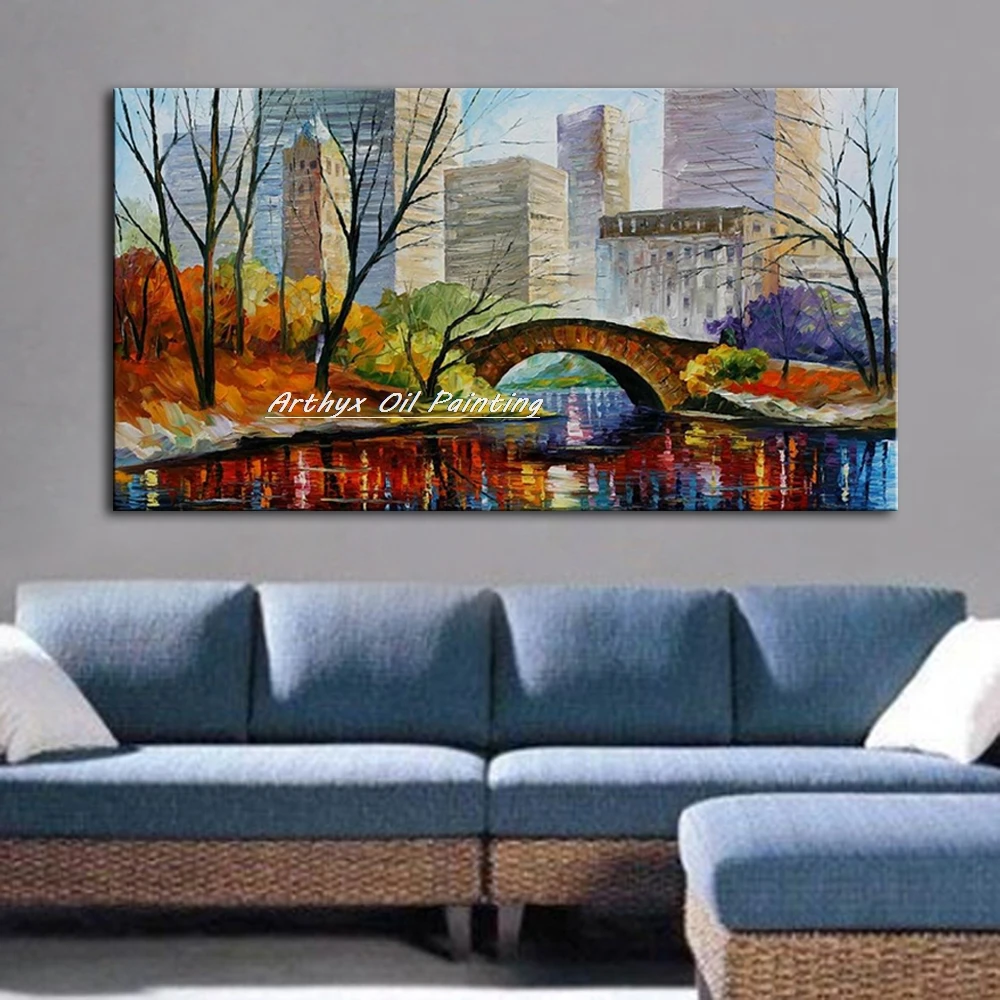 Handpainted Palette Knife Oil Paintings on Canvas,Abstract City Landscape Posters,Modern Wall Art Picture,Living Room Home Decor
